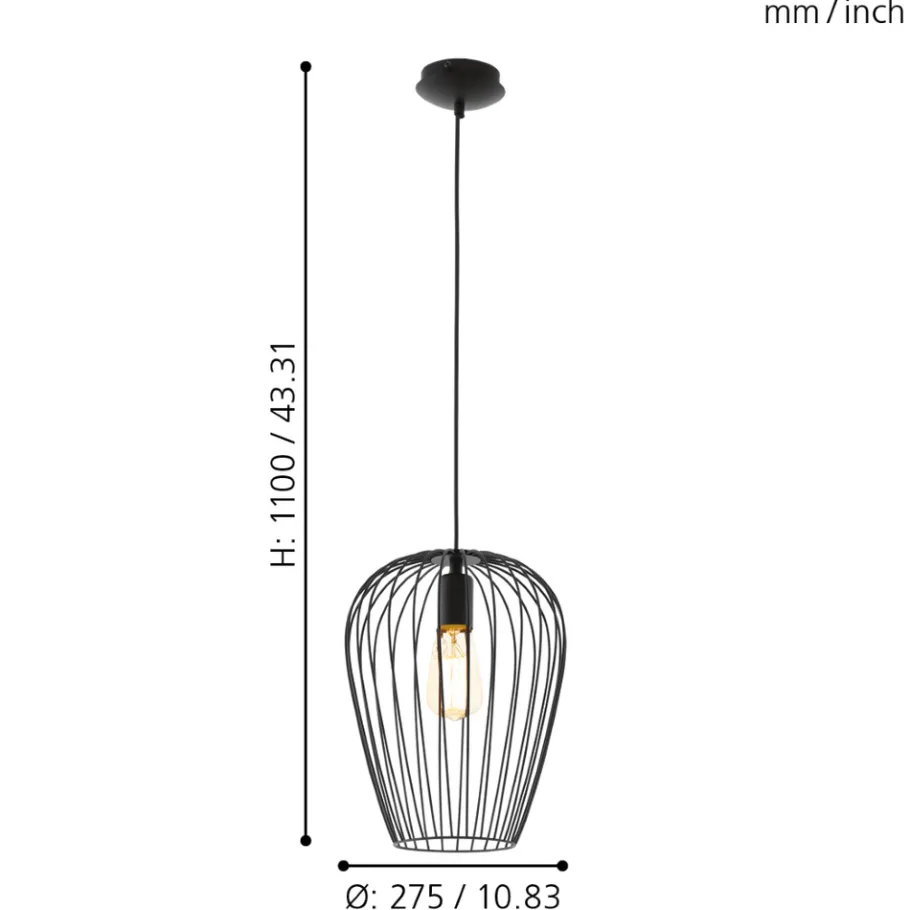 Eglo NEWTOWN hanglamp staal zwart H: 1100 mm | Ø 275 mm
