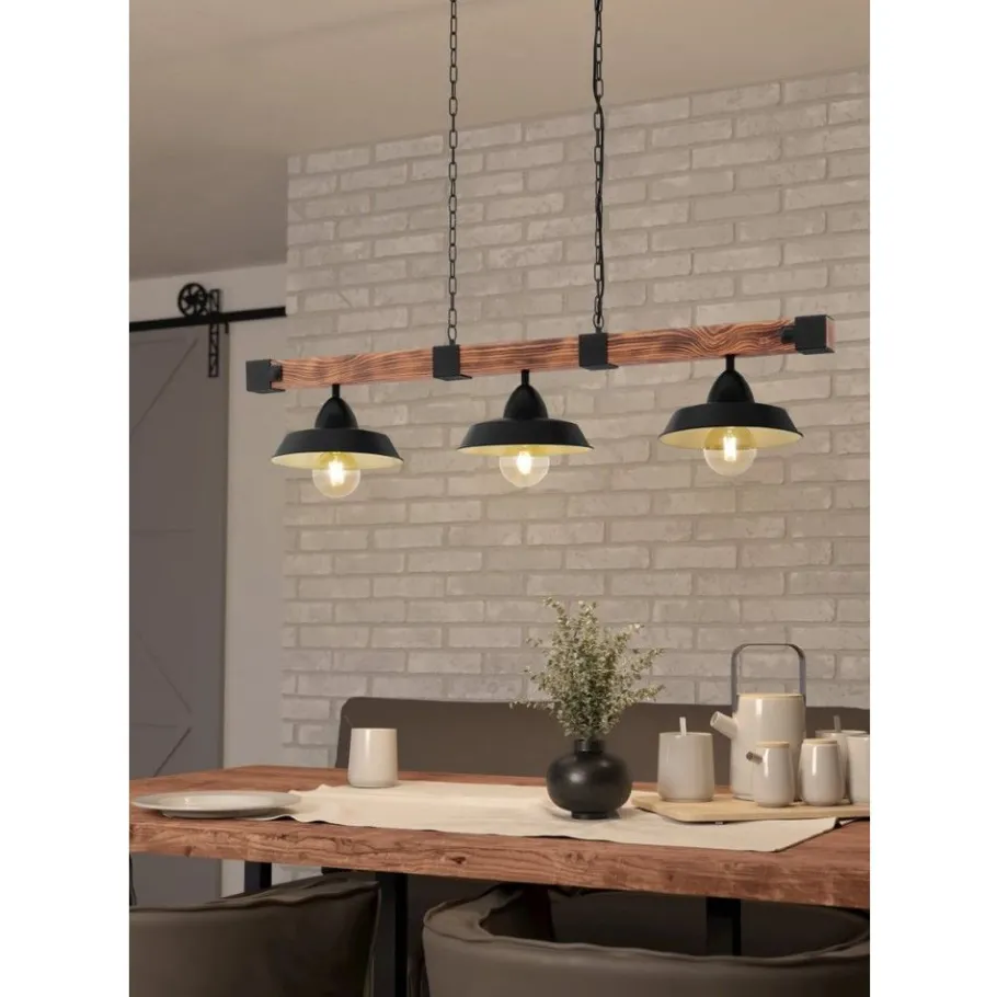 Eglo OLDBURY hanglamp staal, hout zwart, bruin, landelijk H: 1100 mm Discount