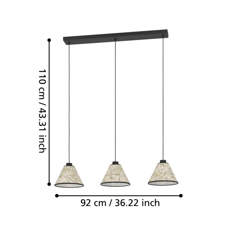 Eglo OXPARK hanglamp staal zwart / textiel met bamboebladeren wit, groen H: 1100 mm Discount