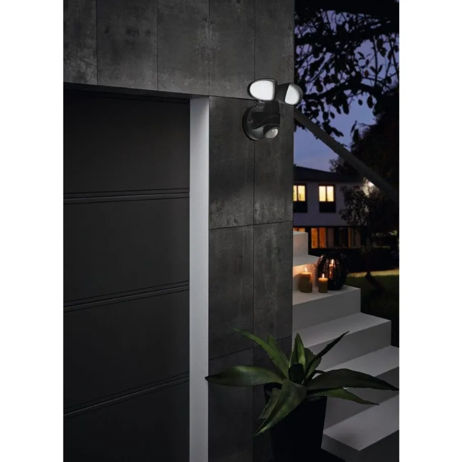 De PAGINO LED buitenwandlamp bestaat uit een zwarte kunststof behuizing en twee beweegbare ronde spots. De LEDs achter de witte kunststof lichtvlakken stralen een krachtig neutraal wit licht uit. De wandlamp is uitgerust met een bewegingsdetector en schakelt het licht automatisch in om slecht zichtbare zones te verlichten en ongewenste bezoekers af te schrikken. De geïntegreerde schemersensor meet het omgevingslicht en schakelt het licht alleen in als het echt nodig is. De spatwaterdichte (IP44) buitenarmatuur kan zonder problemen buiten worden gebruikt. De spots kunnen zowel naar rechts en links als naar boven en beneden worden gedraaid en zorgen voor een gerichte, veilige en betrouwbare verlichting van je buitenruimte, of het nu gaat om de verlichting van een veld, de ingang van het huis of een carport.