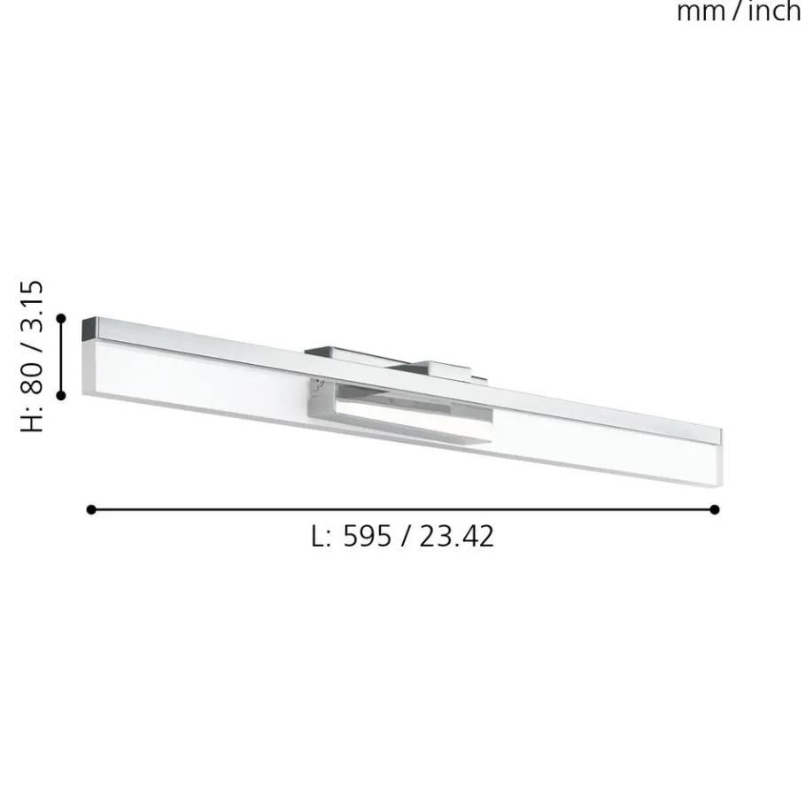De PALMITAL LED-spiegellamp is gemaakt van verchroomd metaal en heeft een rechthoekig verlichtingsoppervlak van transparante kunststof. De in het armatuur geïntegreerde LEDs stralen indirect een aangenaam warm wit licht uit via het transparante verlichtingselement. De spiegelwandlamp is spatwaterdicht (IP44) en kan dus zonder angst in de badkamer worden gebruikt. Met haar minimalistische ontwerp past deze wandlamp in elke moderne ruimte en zorgt ze voor stijlvolle verlichting in de badkamer boven de spiegel.