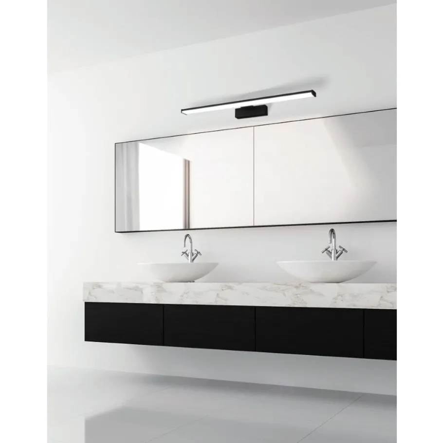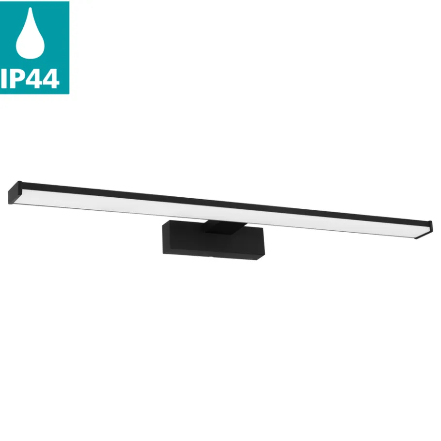 De PANDELLA 1 LED-spiegellamp is spatwaterdicht (IP44) en kan dus zonder angst in een badkamer worden gebruikt. Het is gemaakt van zwart aluminium en plastic. De geïntegreerde LEDs stralen een krachtig neutraal wit licht uit en blijven onzichtbaar dankzij de witte plastic afdekking. Deze wandlamp past perfect in moderne interieurs en zorgt voor stijlvolle verlichting in de badkamer boven de spiegel.