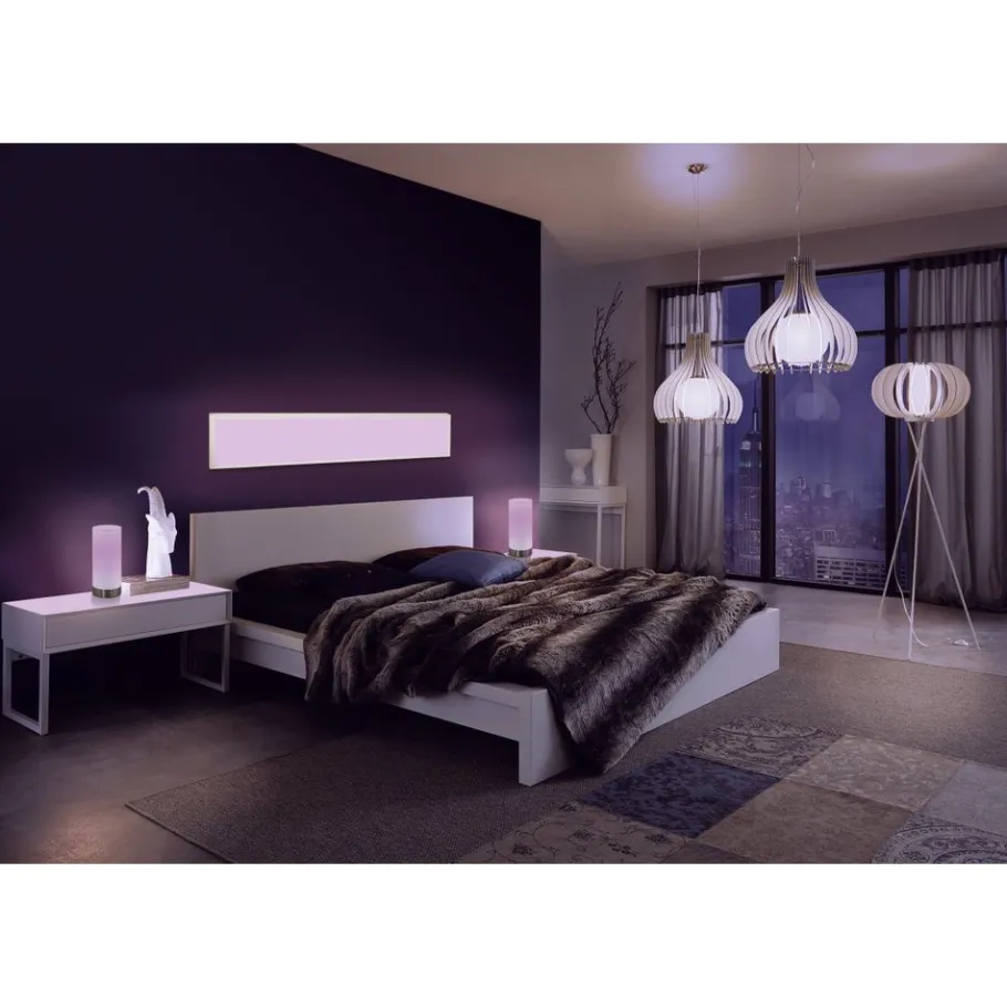 De PASTERI tafellamp bestaat uit een cilindervormige kap van wit textiel en een voet van mat nikkel metaal. Met zijn eenvoudige ontwerp past deze tafellamp perfect in bijna elke interieurstijl. De kabelschakelaar maakt het aan- en uitschakelen gemakkelijk. Hij zorgt voor een aangename verlichting in je kamer, of het nu in de slaapkamer op het nachtkastje is, of in de woonkamer op een console. De lichtbron is niet inbegrepen. De lamp is compatibel met elke E27 lamp.