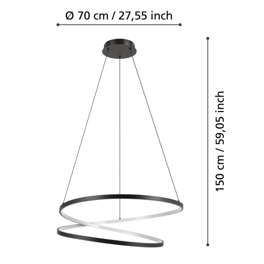 Eglo RUOTALE hanglamp aluminium, staal zwart / Kunststof wit H: 1500 mm | Ø 700 mm Outlet