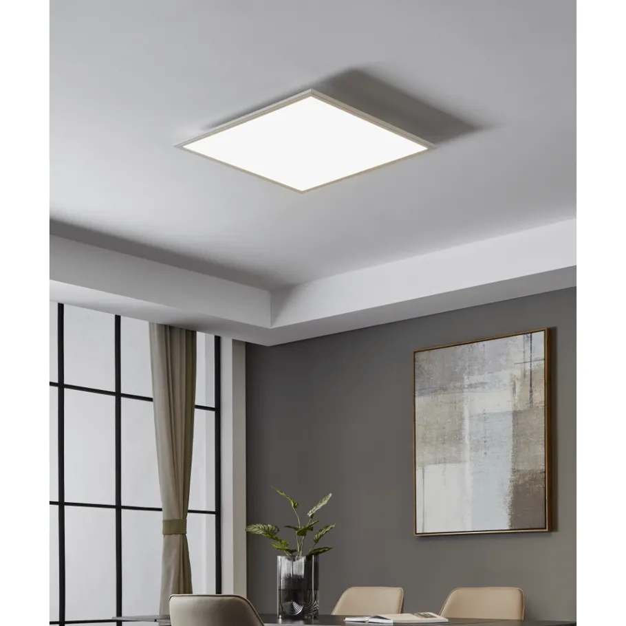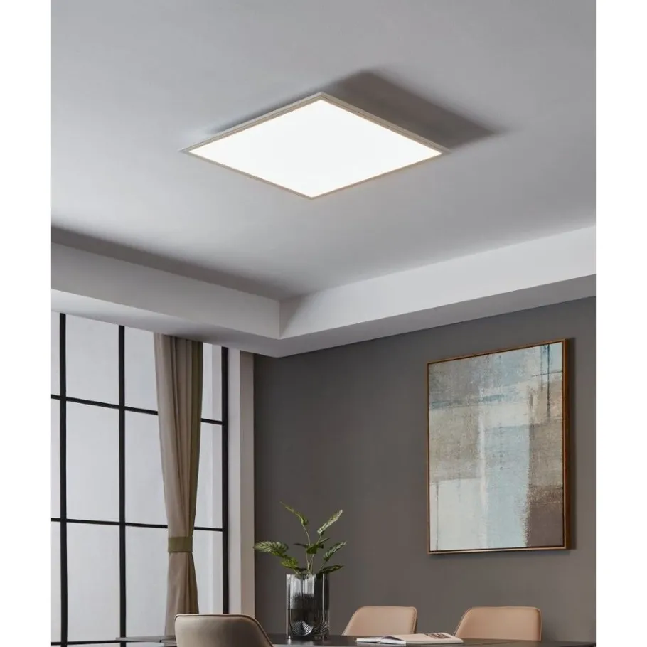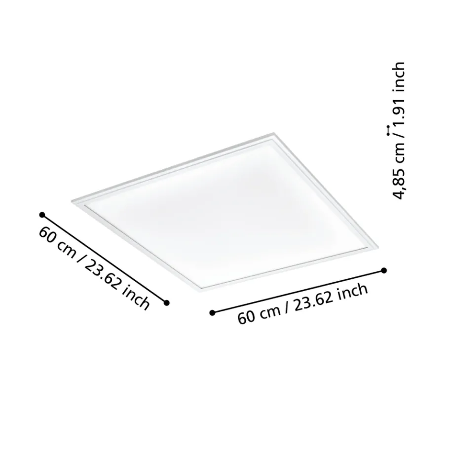 De SALOBRENA-Z LED plafondlamp uit de Smart Home connect.Z serie bestaat uit een vierkant wit metalen frame gecombineerd met een wit kunststof lichtoppervlak. Dankzij het visuele zwevende effect van de verborgen plafondbeugel maakt dit LED-paneel een bijzonder hoogwaardige indruk. De geïntegreerde LEDs geven een aangenaam licht volgens je voorkeuren. Je kunt kiezen tussen warm wit, neutraal wit en koel wit licht. De plafondlamp wordt bediend via de gratis app (AwoX Home Control) en geeft je toegang tot andere comfortfuncties zoals dimmer, timer, aanwezigheidssimulatie en nog veel meer. Het paneel wordt beheerd via Bluetooth of ZigBee 3.0. Bediening via een compatibele spraakassistent is ook mogelijk. De slimme plafondlamp kan ook worden bediend met een afstandsbediening, die apart verkrijgbaar is. Met zijn afmetingen van 59,5 x 59,5 cm past hij perfect in moderne interieurstijlen en zorgt hij voor een aangename verlichting in elke ruimte, of het nu de keuken, woonkamer, slaapkamer, eetkamer of kantoor is.