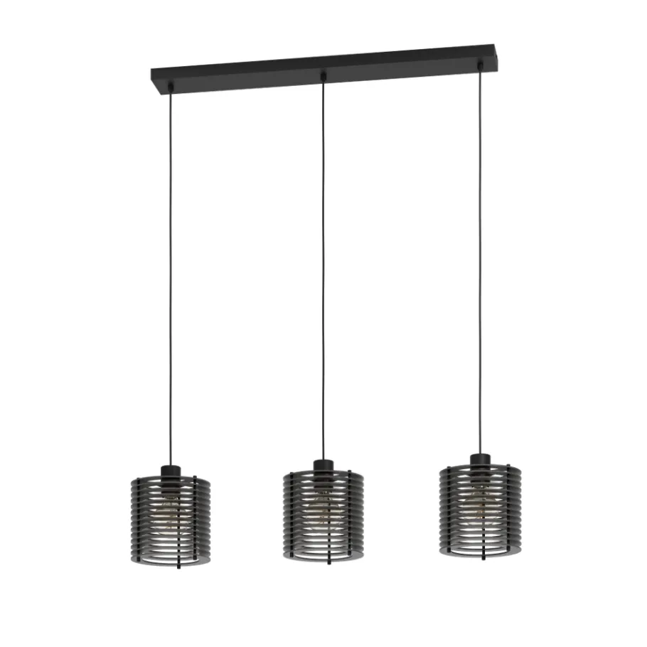 De Segovia hanglamp bestaat uit een zwarte metalen ophanging en drie lampenkappen. De kapjes zijn gemaakt van zwarte lamellen, die bij verlichting fascinerende licht- en schaduweffecten creëren. De boven elkaar geplaatste lamellencirkels zorgen ervoor dat je niet verblind geraakt. De hanglamp past perfect in moderne inrichtingstrends – in de woonkamer of in de eetkamer boven de eettafel. De afgebeelde lichtbronnen zijn niet inbegrepen. De lamp heeft een lichtbron nodig met E27 fitting.