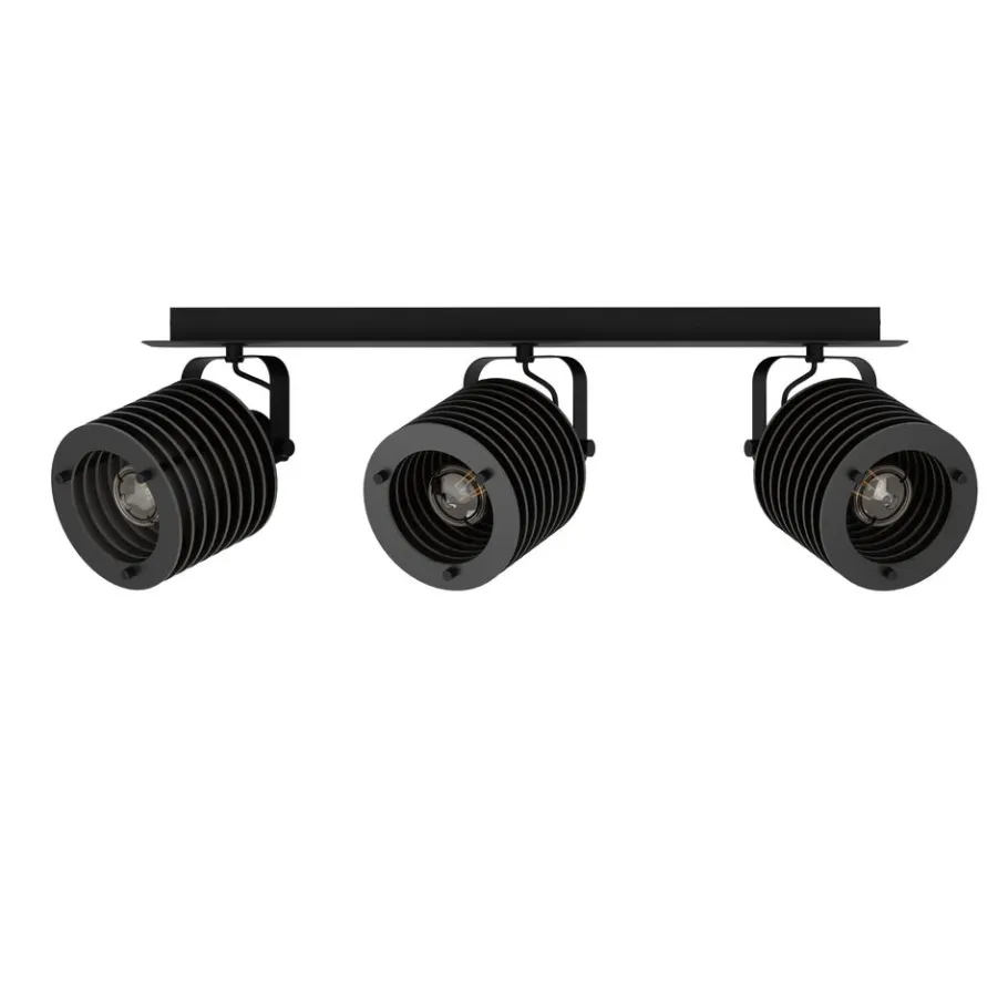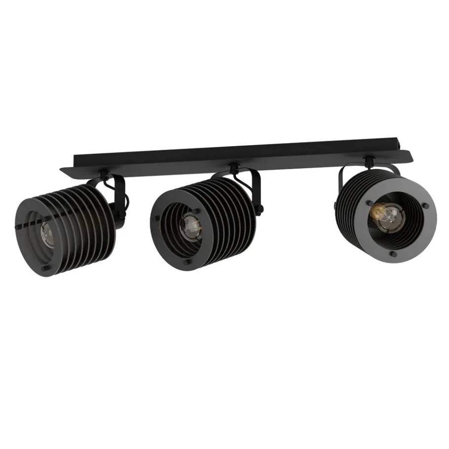 Deze Segovia plafondlamp bestaat uit een balk van zwart staal met drie kapjes gemaakt van negen zwarte houten ringen dat zal zorgen voor een mooi lichtspel. De spots zijn richtbaar. Hij zal gegarandeerd goed staan in de slaapkamer, woonkamer of keuken. De lamp is geschikt voor elke lichtbron met E27-fitting, maar de lichtbronnen zijn niet inbegrepen.