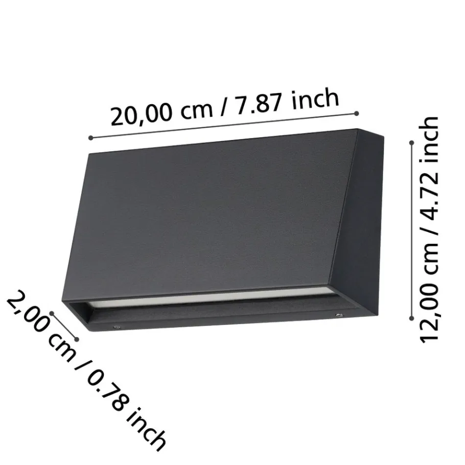 De SPONGANO LED buitenwandlamp bestaat uit een hoekige behuizing van antraciet aluminium en een kap van helder glas. Het minimalistische en lineaire ontwerp past in bijna elke buitenruimte en zorgt voor een stijlvolle verlichting op de buitenmuur. Via de schakelaar is er de mogelijkheid om de buitenlamp om te schakelen naar de lichtkleuren 3000K, 4000K, 5000K en 6500K. De wandlamp is zowel stof- als straalwaterdicht (IP65) en maakt een probleemloos gebruik in de buitenruimte mogelijk.