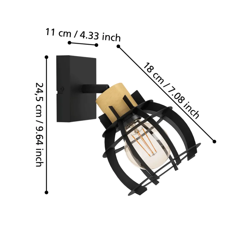Eglo STILLINGTON 1 spot staal, hout zwart, bruin H: 245 mm | Ø 160 mm Discount
