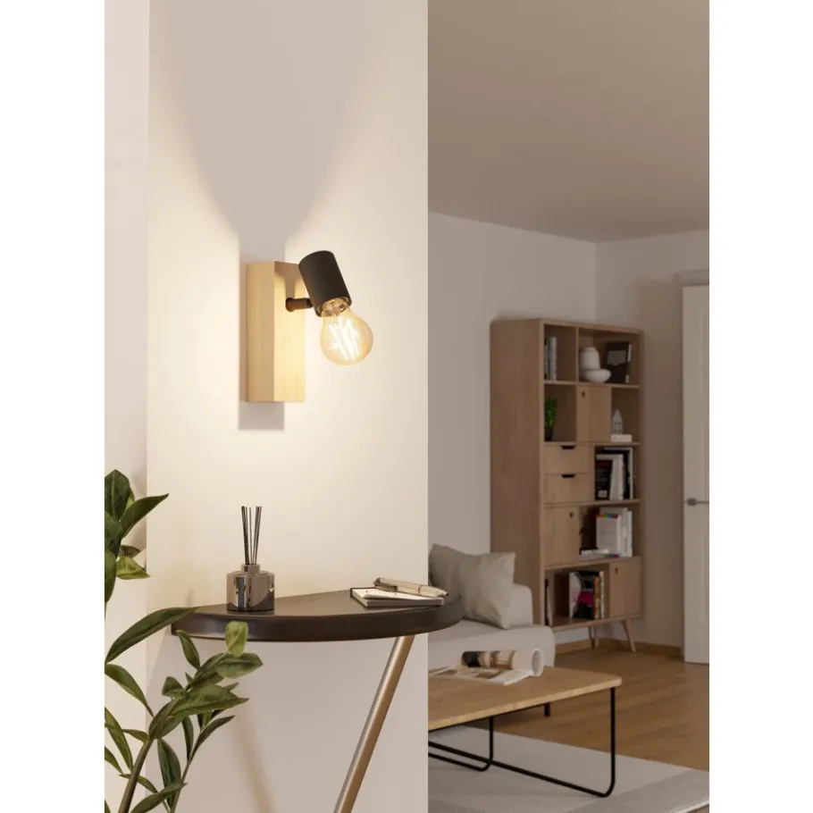 Deze spot uit de TOWNSHEND 3-serie in hout en zwart staal is een decoratief juweeltje voor elk huis. Je kunt zelf kiezen welke E27 lamp je gebruikt, waardoor dit armatuur een echte blikvanger wordt.