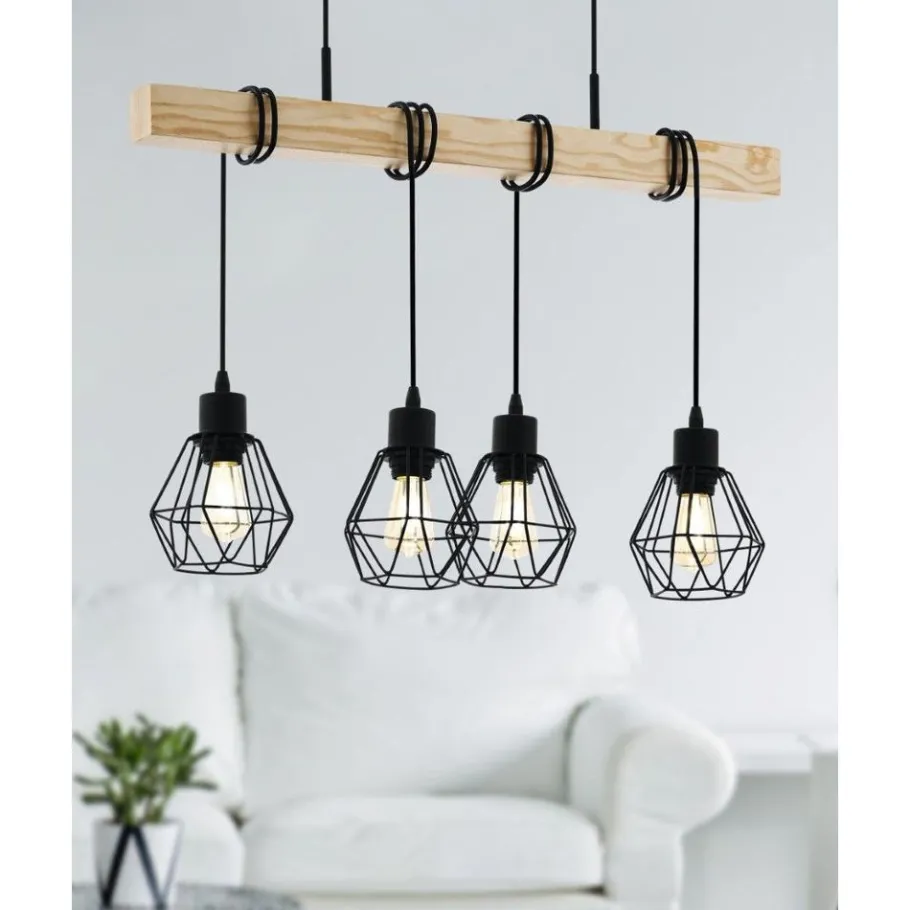 Eglo TOWNSHEND 5 hanglamp staal, hout zwart, bruin H: 1100 mm