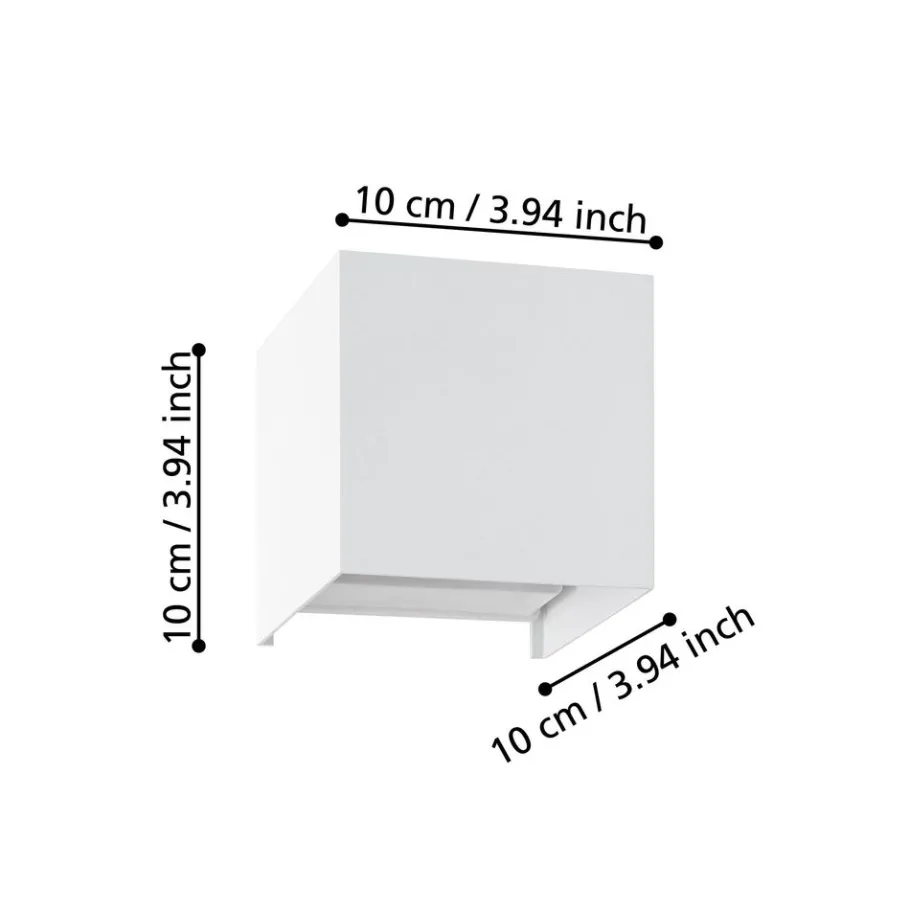 Deze VALMONTE wandlamp is gemaakt van wit aluminium en transparant glas. Hij meet 10cm lang, 10cm hoog en 10cm diep en schijnt een aangenaam warm wit licht van 3000K.