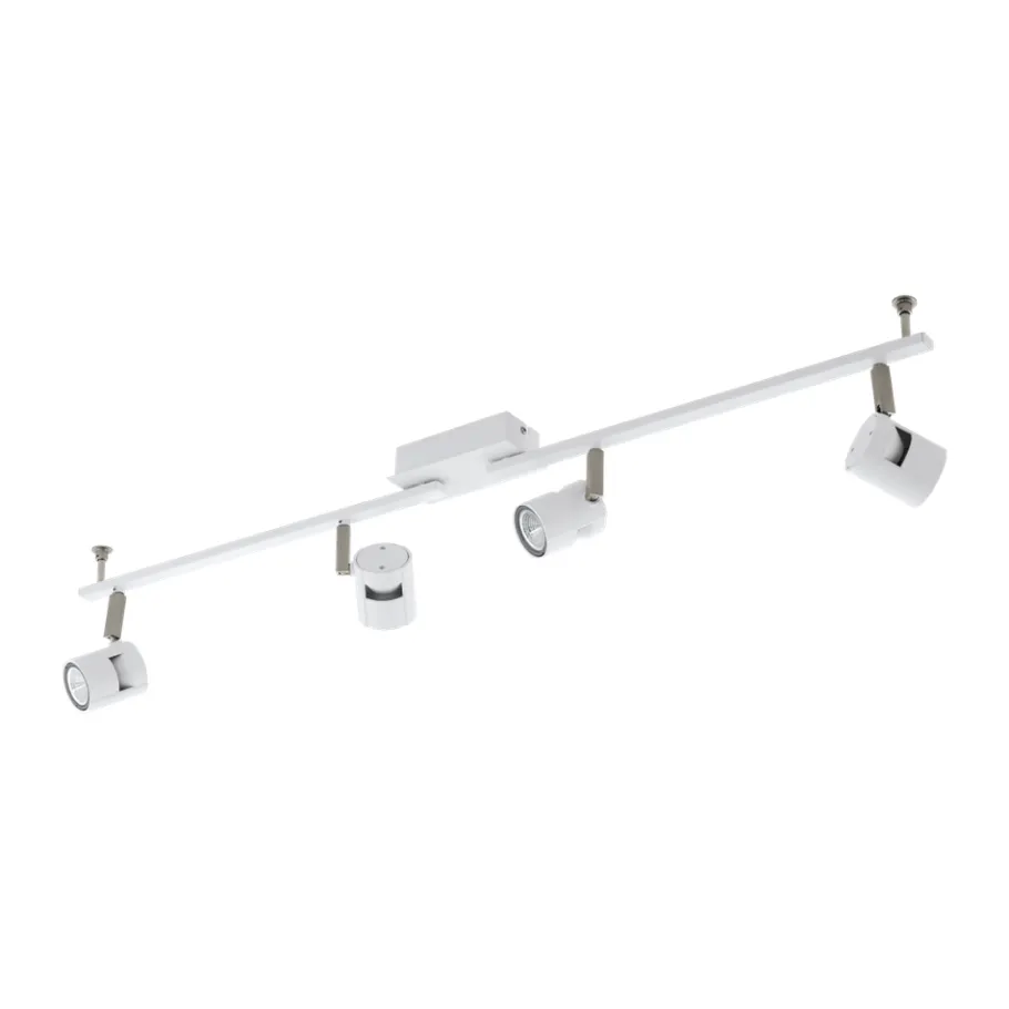 De VERGIANO LED plafondlamp is gemaakt van wit metaal met vier beweegbare cilindrische spots. De matte nikkel metalen elementen op de lichtkoppen en de discrete zijopeningen maken het moderne ontwerp van deze plafondspot slim af. De meegeleverde GU10 LED lampen geven een aangenaam warm wit licht. Met een wandschakelaar kan je de lichtsterkte in drie fasen aanpassen door het licht meerdere malen aan en uit te schakelen. Met de mobiele spots kan je bepaalde delen van de ruimte benadrukken, of het nu gaat om de keuken, de woonkamer, de slaapkamer, de hal of de eetkamer.