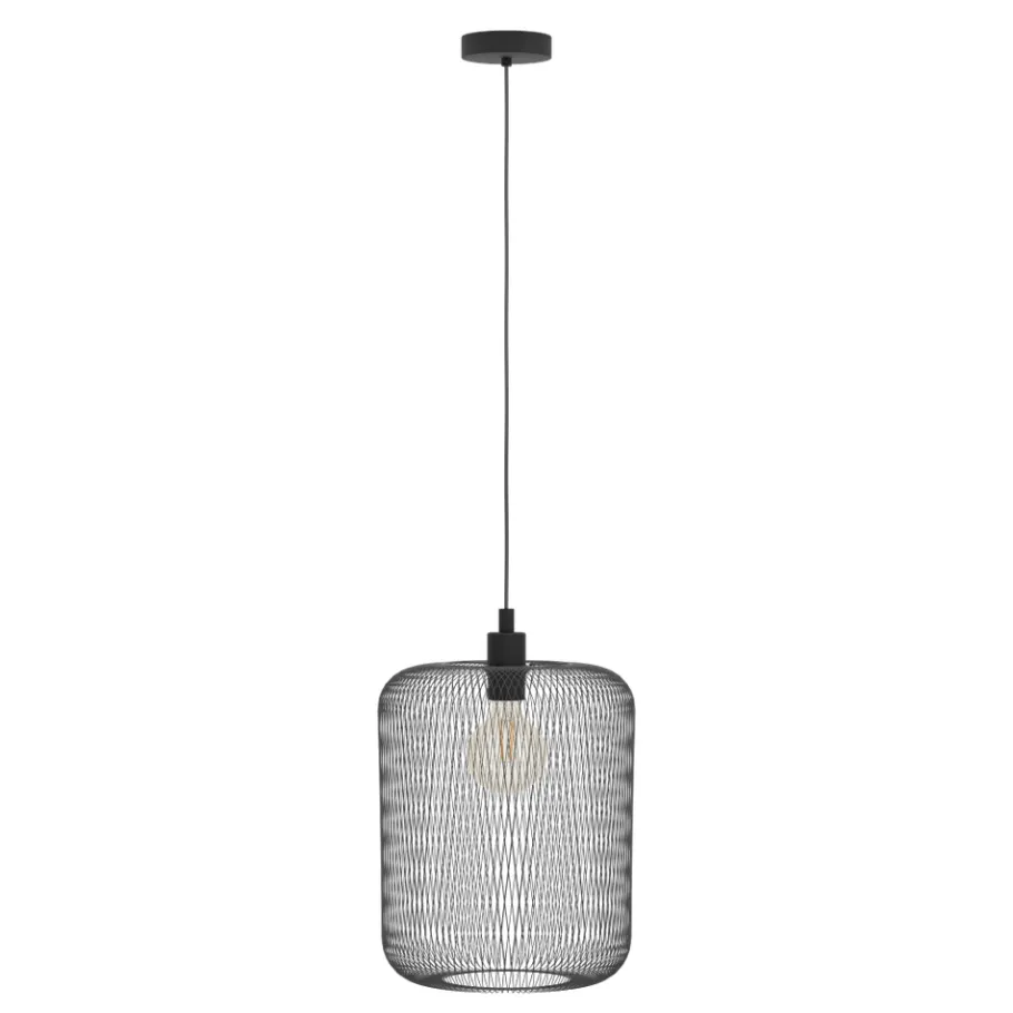 De WRINGTON hanglamp bestaat uit een cilindervormige kap van zwart metaalgaas. Het raster van de kap creëert een prachtig spel van licht en schaduw zodra de armatuur wordt ingeschakeld. De lamp past perfect in de vintage trend en moderne interieurs. Het biedt originele verlichting in elke ruimte, of het nu in de keuken, woonkamer of eetkamer is, boven de tafel. De afgebeelde lichtbron is niet inbegrepen. De armatuur is compatibel met elke E27 lamp.