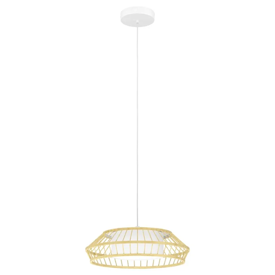 Eglo YUKU-Z hanglamp staal wit / hout, textiel bruin, wit H: 1100 mm | Ø 460 mm