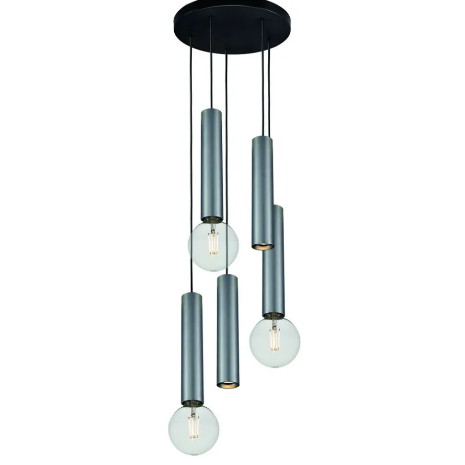 Fantasia TABOO pendel 5L 2xGU10 (excl) 3xE27 (excl) zwart + geborsteld staal New