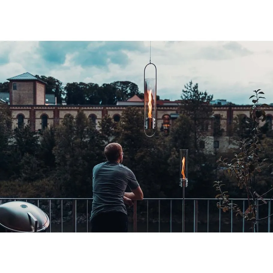 SPIN HANGING FIRE– een wilde werveling van vlammen in een decoratieve glazen cilinder die als bij toverslag in de ruimte lijkt te zweven. Een eyecatcher met een warme uitstraling. Om je goed te voelen en te genieten op je balkon, terras of woonkamer.