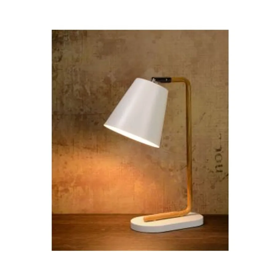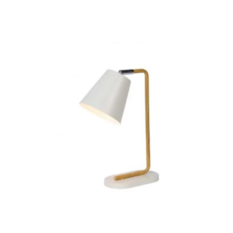 Duurzaam, puur, functioneel en authentiek. Dit is in een notendop waar modern Scandinavisch design voor staat. Deze kwaliteiten worden verenigd in de schitterende Cona tafellamp van Lucide. Ondanks dat de Cona eenvoud uitstraalt werden er toch zeer mooie details in dit armatuur verwerkt. Neem bijvoorbeeld de houtmotief stalen stang die in een schitterende ronding vanaf de kap volledig doorloopt over het horizontale vlak van de ovaal gevormde voet. De redelijk grote wit metalen kap met een Ø 14 cm geeft een aangenaam licht. Daarnaast werd de kap voorzien van een kniegewricht waardoor deze eenvoudig te draaien en te richten is. De Cona is er als tafel en vloerlamp.