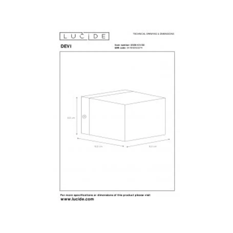 De wandlamp Lucide Devi is een schitterend afgewerkt aluminium armatuur. Deze veel door architecten toegepaste wandlamp komt het best tot zijn recht op een mooie stuc wand of een stoere grof gemetselde muur. Deze wandlamp geeft namelijk een prachtige zandlopervormige lichtbundel. Met een achterplaat afmeting van 10,5cm x 8cm laat de Devi zich eenvoudig over een centraaldoos plaatsen. De Devi is uitgevoerd met een G9 hoogvolt fitting maar wordt zonder lichtbron geleverd. Kies zelf voor een traditionele G9 halogeenspot (max 42W) of een energiebesparende al dan niet dimbare G9 LED lichtbron. LED of traditioneel halogeen, doordat er geen transformator in de Devi zit is dit armatuur zeker zeer eenvoudig dimbaar (met een basic in of opbouw dimmer – niet inbegrepen). De Devi is beschikbaar in de kleuren zwart met binnenzijden mat goudkleurig, wit en aluminium.