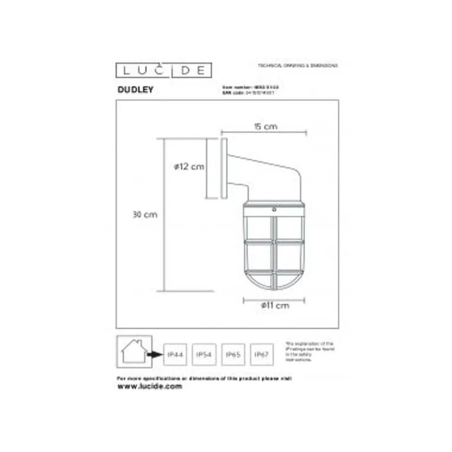 Lucide DUDLEY – Wandlamp Buiten – 1xE27 – IP65 – Mat Goud / Messing