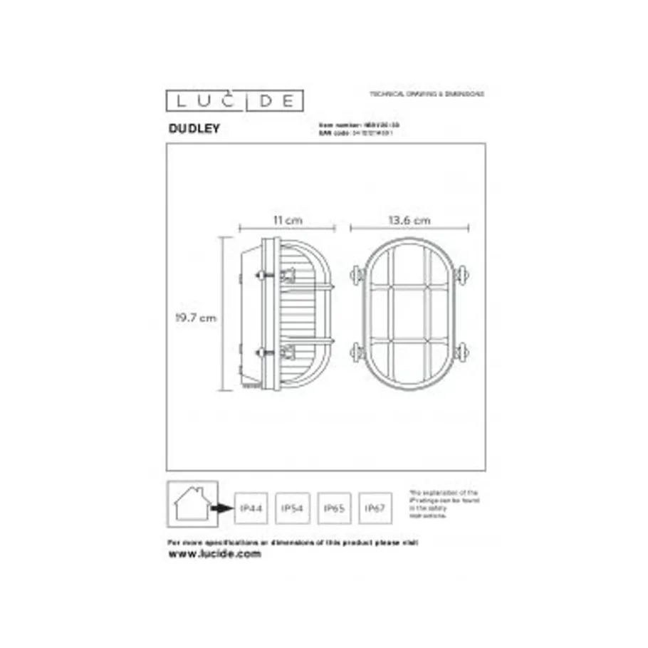 Lucide DUDLEY – Wandlamp Buiten – 1xE27 – IP65 – Zwart Clearance