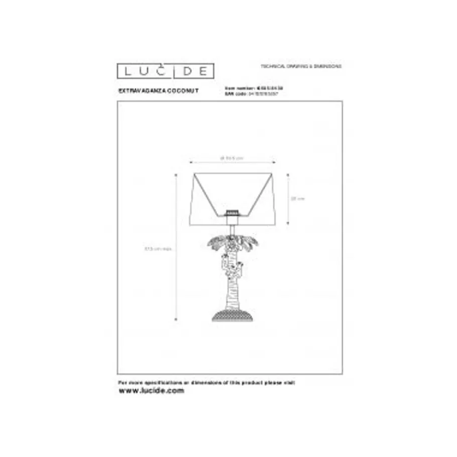 Lucide EXTRAVAGANZA COCONUT – Tafellamp – Ø 30,5 cm – 1xE27 – Zwart Best