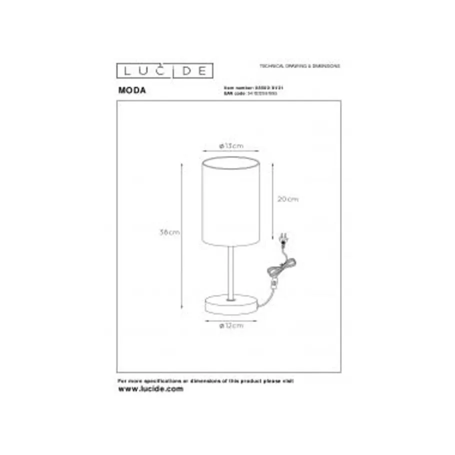 Lucide MODA – Tafellamp – Ø 13 cm – 1xE27 – Wit Hot