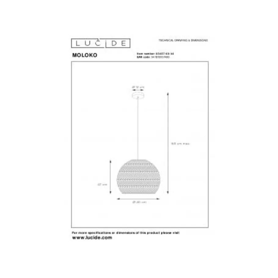 Lucide MOLOKO – Hanglamp – Ø 40 cm – 1xE27 – Okergeel Best