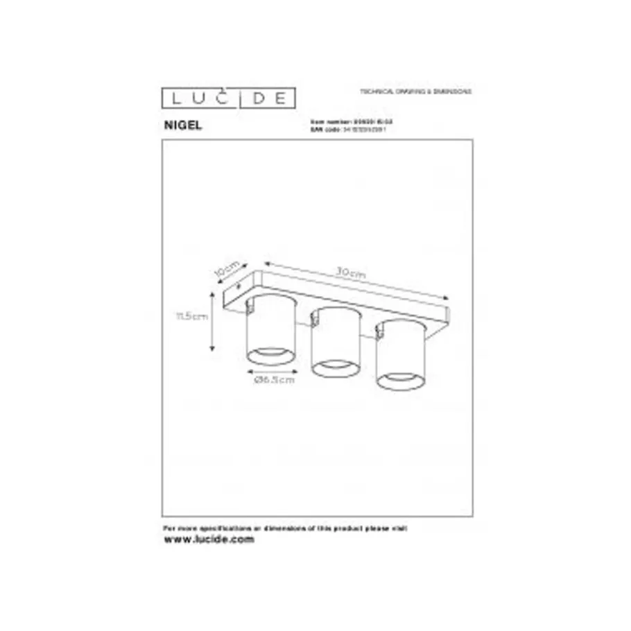 Lucide NIGEL – Plafondspot – LED Dim to warm – GU10 – 3x5W 2200K/3000K – Mat Goud / Messing New