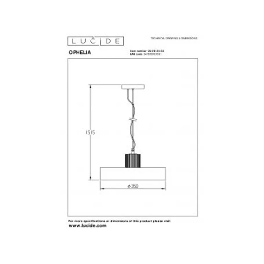 Lucide OPHELIA – Hanglamp – Ø 35 cm – 1xE27 – Zwart New