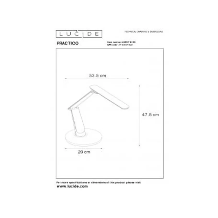 Lucide PRACTICO – Bureaulamp – LED Dim to warm – 1x10W 3500K/5000K – Zwart