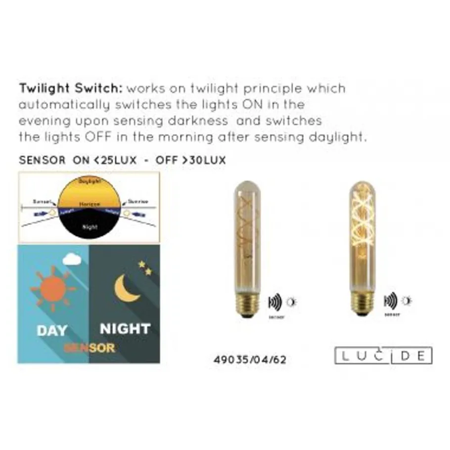 Lucide T32 TWILIGHT SENSOR – Filament lamp Buiten – Ø 3,2 cm – LED – E27 – 1x4W 2200K – Amber Outlet