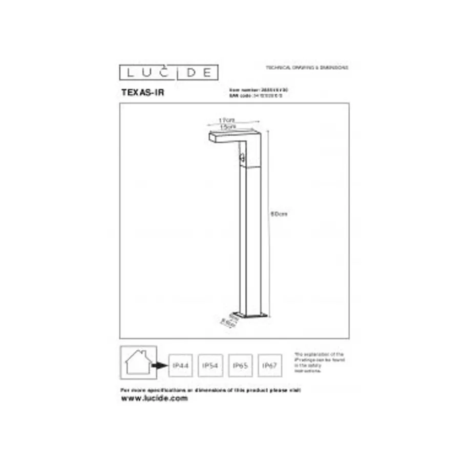 Lucide TEXAS-IR – Sokkellamp Buiten – LED – 1x6W 3000K – IP54 – Antraciet Outlet