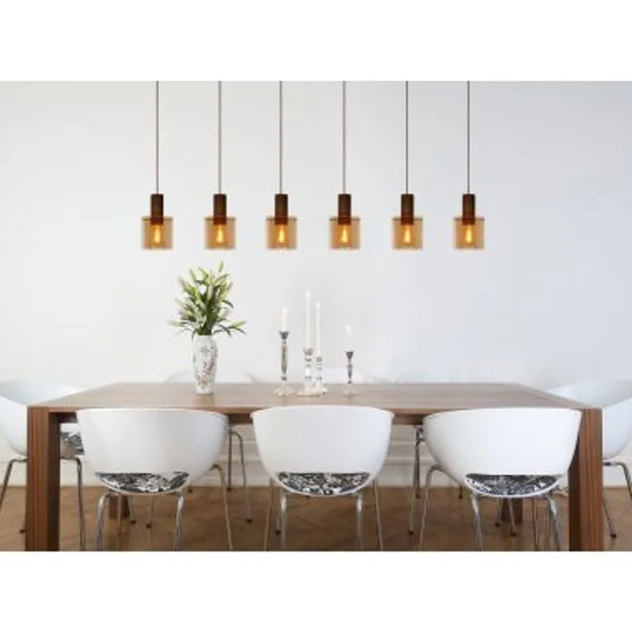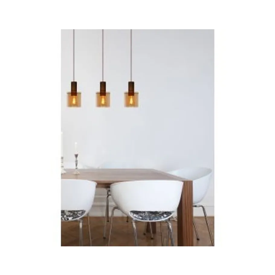 Lucide TOLEDO Hanglamp 3xE27/60W Koper / Amber glas Clearance
