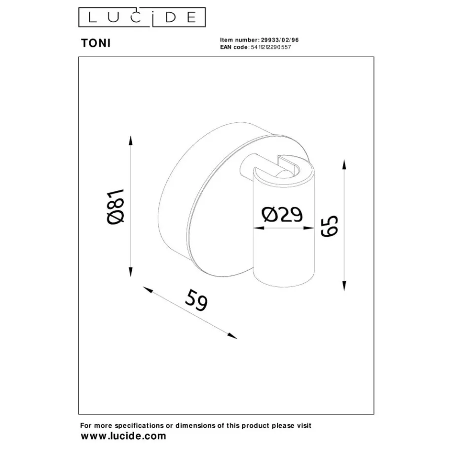 Lucide TONI – Oplaadbare Wandspot / Wandlamp – Accu/Batterij – Ø 8,1 cm – LED Dimb. – CCT – 1x2W 2700K/4000K – Magnetisch – Koffie Online