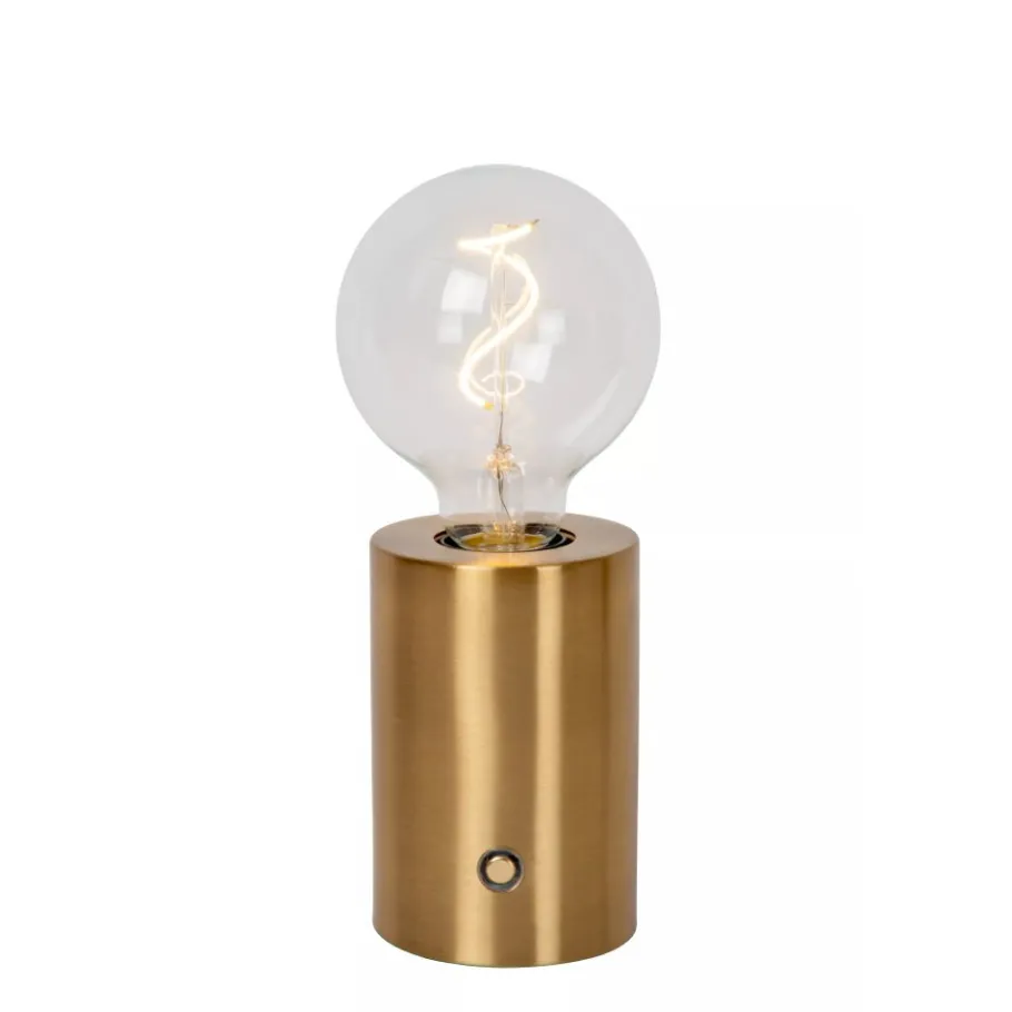 Lucide VIVO – Oplaadbare Tafellamp – Accu/Batterij – Ø 8 cm – LED Dimb. – E27 – 1x1W 2700K – Mat Goud / Messing Clearance