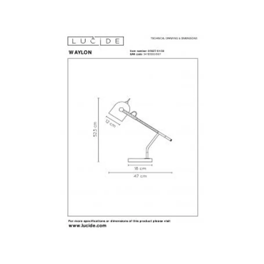 Lucide WAYLON – Bureaulamp – 1xE27 – Zwart Sale
