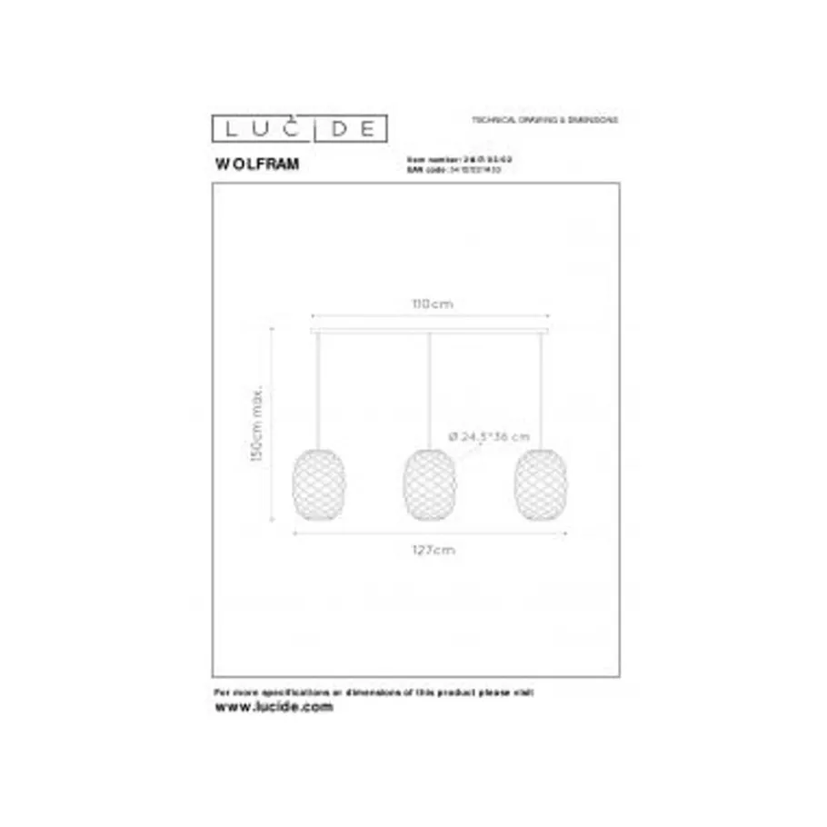 • Verbruik: 3x60W / 230V / Dimbaar (excl.)