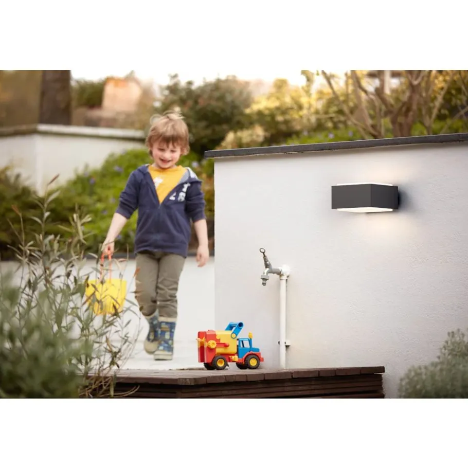 Deze Philips-buitenarmatuur is speciaal ontworpen voor vochtige buitenruimtes en heeft strenge tests ondergaan om de waterbestendigheid te garanderen. Het IP-niveau bestaat uit twee cijfers: het eerste verwijst naar het beschermingsniveau tegen stof en het tweede tegen water. Dit armatuur is IP44: bestand tegen spatwater en ideaal voor algemeen buitengebruik.