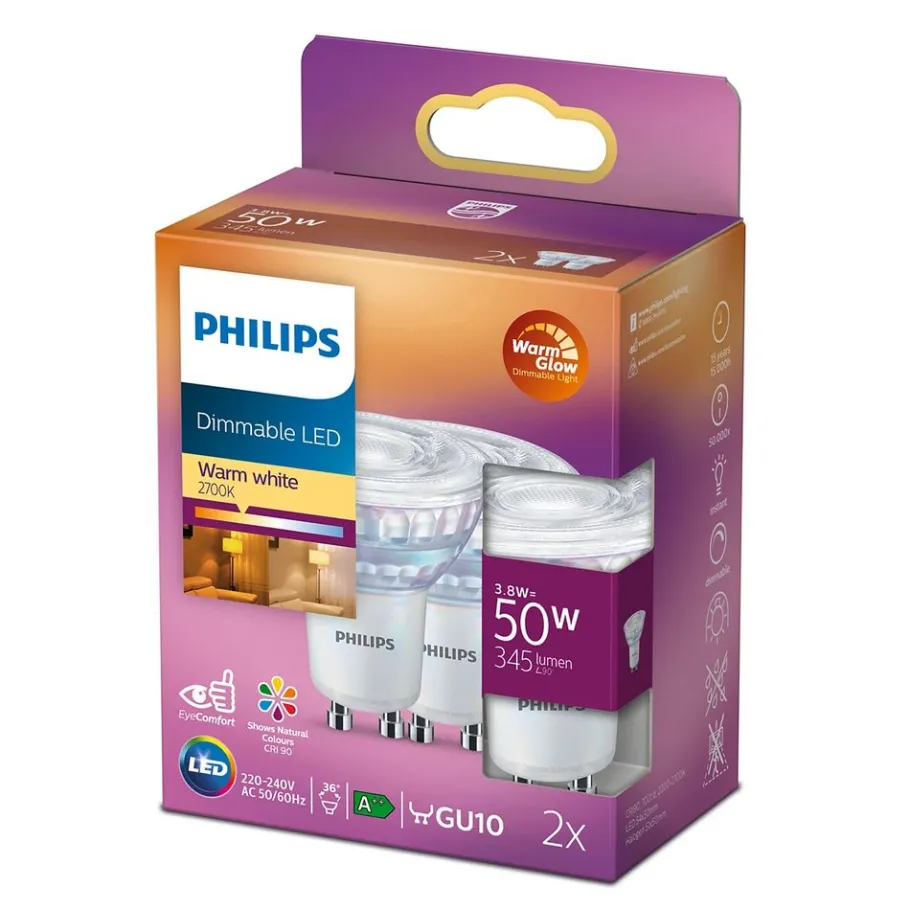 Met Philips WarmGlow LED’s kunt u uw dagelijkse verlichting dimmen tot de aangename tonen van traditionele lampen. Hoe meer u dimt, hoe warmer het licht. Hierin onderscheiden deze LED’s zich van standaard dimbare LED-lampen, die alleen minder fel worden wanneer ze worden gedimd. WarmGlow lampen zijn nu ook verbeterd met een kleurweergave-index van 90, vergelijkbaar met natuurlijke verlichting, waardoor de ware kleuren van uw interieur beter uitkomen. Of u nu ’s avonds lekker op de bank ligt of fris aan de dag wilt beginnen, Philips WarmGlow LED’s bieden het licht dat u nodig hebt.