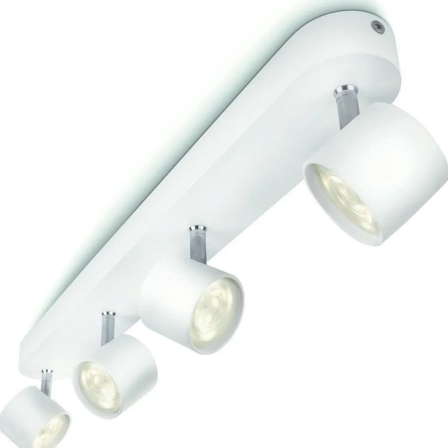 De witte Philips Star opbouwspot kan je gemakkelijk dimmen naar het juiste lichtniveau. Zo heb je altijd het juiste licht bij jouw activiteit. Van functioneel helder voor alledaagse taken, naar een zachter licht voor ontspanning. Deze moderne 4-lichts plafondlamp met draaibare spots past in elk interieur.