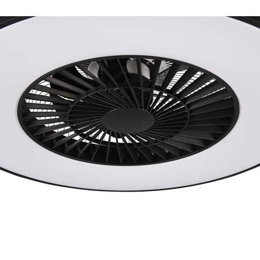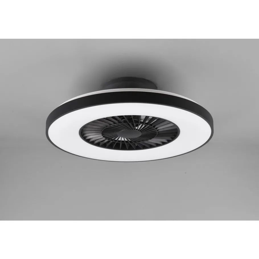 Een mooie ventilator voor het plafond uit de collectie van Trio. Deze moderne ventilator is gemaakt van kunststof in de kleur wit en mat zwart. In deze plafondventilator zit een ingebouwde LED lamp met een wattage van 40W die ook nog eens traploos gedimd kan worden met de geïntegreerde dimmer en ook de lichttemperatuur kan worden aangepast (3000 – 6500K). De ventilator is geschikt voor montage aan het plafond en heeft 3 snelheidsniveaus die ingesteld kunnen worden met de meegeleverde afstandsbediening. Ook heeft dit product handige functies zoals een timer, een nachtlampfunctie en twee lichtpunten die apart geschakeld kunnen worden. Het opvallende armatuur heeft een schitterend sterreneffect.
