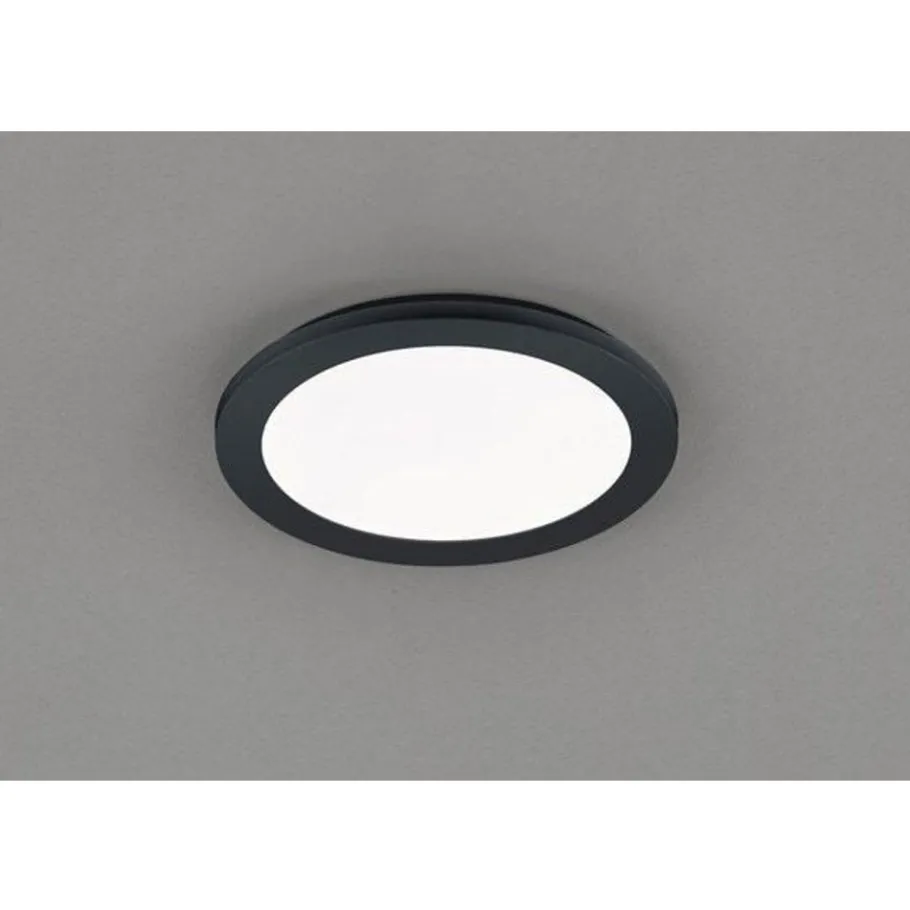 Camillus wand- of plafondlamp, inclusief lichtbron 1 x LED 15W max 230V, 3000K (warm wit), 1350lm, CRi>80, IP44, mat zwart, dimbaar via switchdimmer (niet extern dimbaar). Afmetingen: Ø260x30mm.