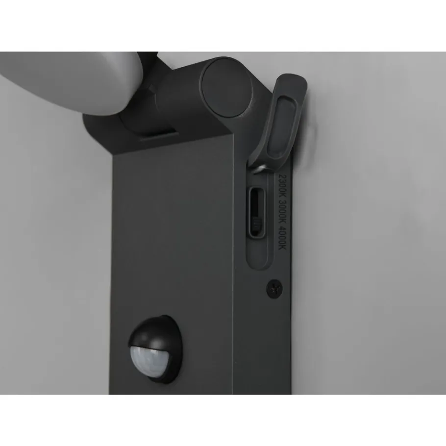 De ADOUR wandlamp biedt een uitnodigend verlichtingsdesign op ooghoogte! Als elegante en praktische oplossing verlicht ze de ingang van het huis en zorgt ze voor ideaal licht wanneer ze in het bovenste kwart van de deurhoogte wordt geïnstalleerd. Dankzij de IP44-beschermingsgraad is de armatuur met bewegingssensor ook ideaal voor patio’s, gevels van huizen of tuinhuisjes. Met de DIP SWITCH kun je drie verschillende lichtkleuren rechtstreeks op het armatuur instellen om de juiste lichtstemming voor je buitenruimte te creëren. Met de kantelbare armatuurkop kun je het licht ook naar wens richten. Het eenvoudige kleurontwerp van het gegoten aluminium in antraciet past moeiteloos in elk buitenconcept. De armatuur is ook voorzien van moderne LED-technologie, die wordt gekenmerkt door een hoge lichtkwaliteit en energie-efficiëntie. Vergeleken met conventionele halogeenlichtbronnen kan tot 80% op de energiekosten worden bespaard. Met LED lichtbronnen profiteert u ook van een lange levensduur en een lage warmteontwikkeling, terwijl het milieu wordt beschermd.