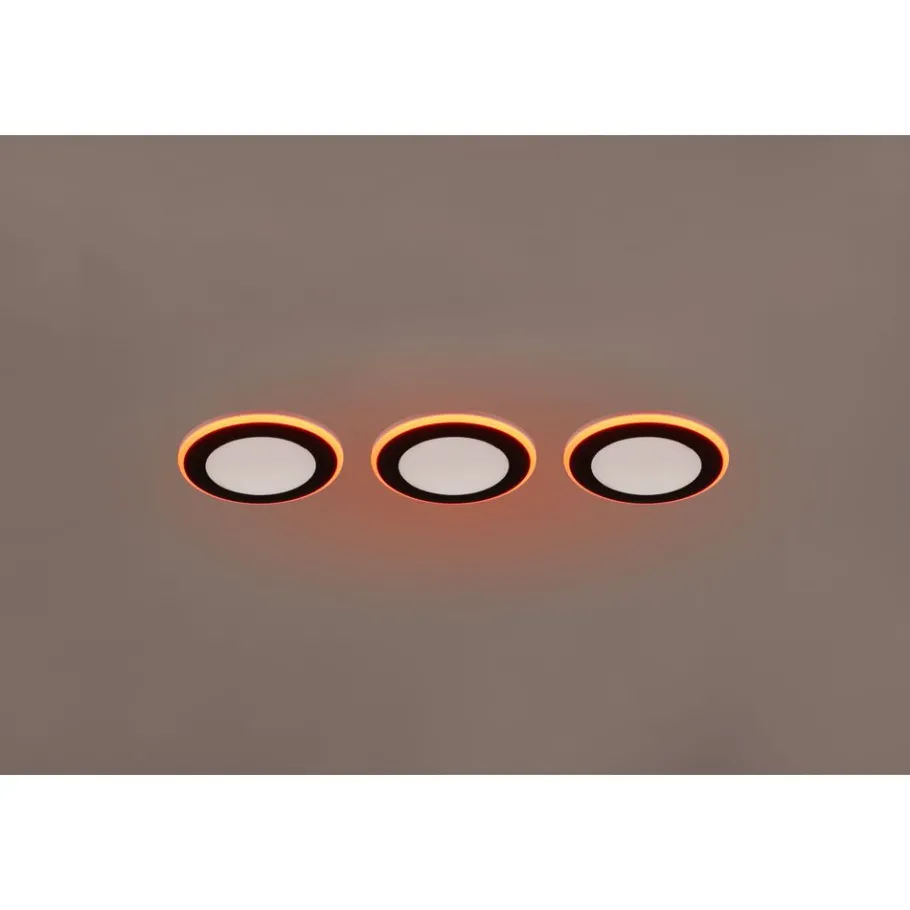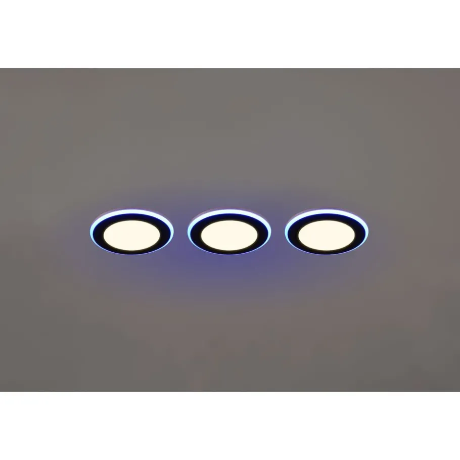 Soms zijn er designmomenten in je eigen vier muren wanneer je alleen de uitstraling van puur licht nodig hebt zonder de visuele verschijning van een armatuur. Dit is het moment voor de ARGUS inbouwarmatuurset van 3. De onopvallende armaturen passen gemakkelijk in het plafond of de wand in alle soorten kamers en benadrukken effectief de helderheid van hun twee lichtbronnen. Met de meegeleverde afstandsbediening kunnen de twee lichtbronnen apart worden geschakeld en kan de lichtsterkte op afstand worden gedimd. Een geïntegreerde RGB-kleurenwisselaar past de lichtkleur van het buitenste verlichte oppervlak aan je wensen aan en geeft je huis een kleurrijke en unieke gloed! De lamp in matzwart kan worden gecombineerd met veel interieurstijlen. De armatuur is ook voorzien van moderne LED-technologie, die wordt gekenmerkt door een hoge lichtkwaliteit en energie-efficiëntie. Vergeleken met conventionele halogeenlichtbronnen kan tot 80% op de energiekosten worden bespaard. Met LED lichtbronnen profiteert u ook van een lange levensduur en een lage warmteontwikkeling, terwijl het milieu wordt beschermd.