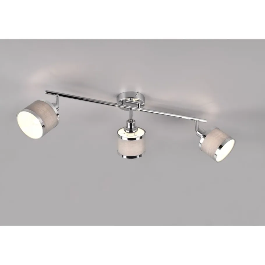 De AROSA-armaturenreeks – warme flair gecombineerd met licht! De combinatie van cilindrische vormen en fijne textielstof straalt elegantie en lichtharmonie uit. De spot met drie lampen zorgt ook voor warme reflecties en een gezellig, uitnodigend lichtspel op het plafond of de muur van je slaapkamer of woonkamer. De chique kleurnuances in chroom en grijs geven je huis een individueel tintje en onderstrepen het wow-effect. Het gebruik van LED lichtbronnen wordt aanbevolen voor energiebesparende verlichting. Deze vormen een ideaal alternatief voor conventionele halogeenlichtbronnen en bieden een hoge lichtkwaliteit en energiebesparingen tot 80%. Met LED lichtbronnen profiteert u ook van een lange levensduur en een lage warmteontwikkeling, terwijl het milieu wordt beschermd.