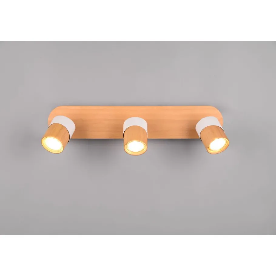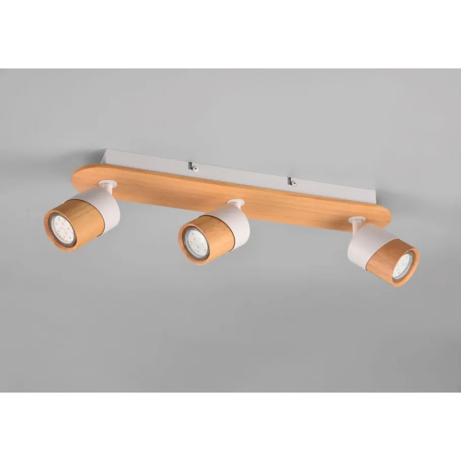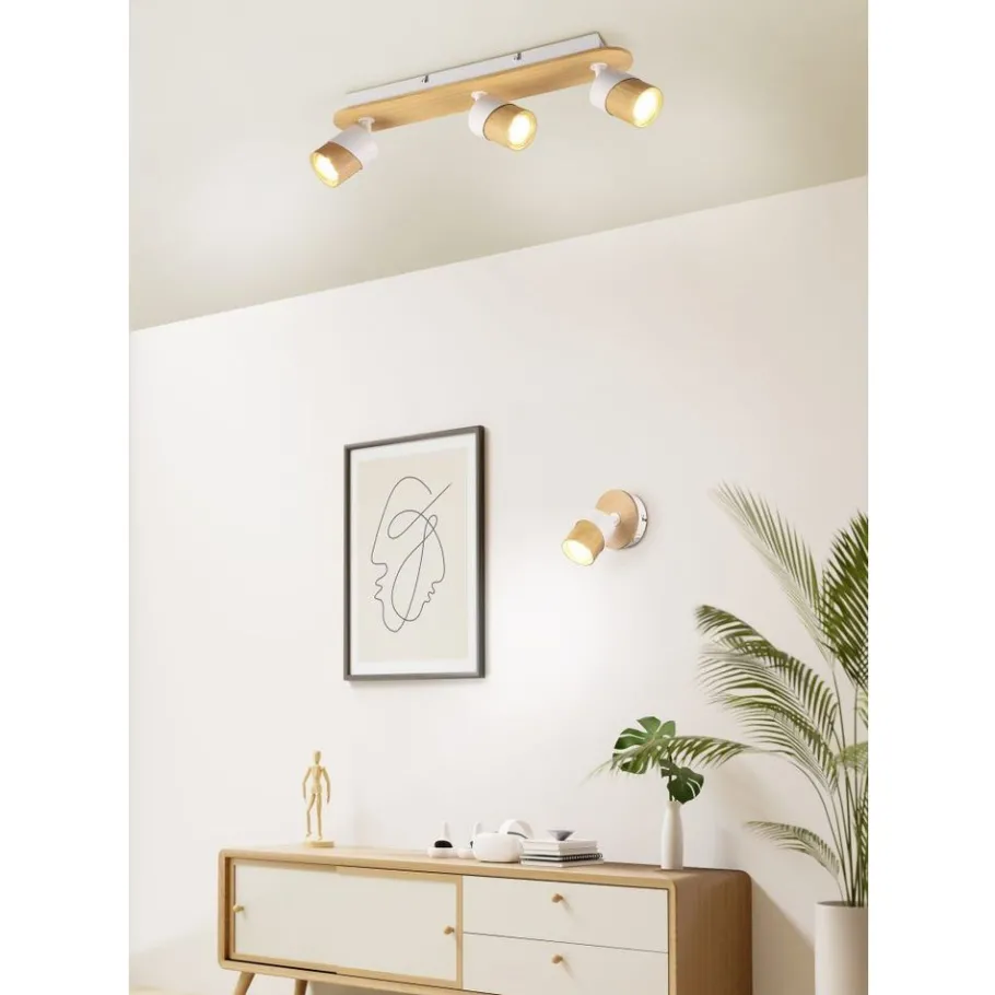 Sterk karakter en veelzijdige spots met de ARUNI serie! Het tijdloze, minimalistische metalen design vormt een spannend contrast met de natuurlijke houtaccenten en creëert zo een opvallend effect. De spot van de drielampsarmatuur is vrij beweegbaar en kan naar wens individueel worden uitgelijnd. Veelzijdig en geschikt voor gebruik in de keuken, hal of woonkamer, past de ARUNI in vele interieurstijlen. Het armatuur heeft een stijlvolle matwitte afwerking en straalt een speciale sfeer uit met zijn natuurlijke houtaccenten. Het gebruik van LED lichtbronnen wordt aanbevolen voor energiebesparende verlichting. Deze vormen een ideaal alternatief voor conventionele halogeenlichtbronnen en bieden een hoge lichtkwaliteit en energiebesparingen tot 80%. Met LED lichtbronnen profiteert u ook van een lange levensduur en een lage warmteontwikkeling, terwijl het milieu wordt beschermd.