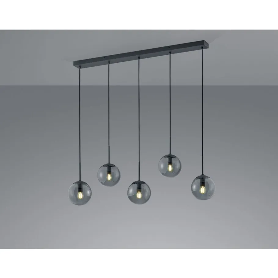 Voor strakke elegantie zorgt de hanglamp BALINI. Deze lamp met haar eenvoudig design maakt door de in de hoogte verstelbare glazen kappen een geraffineerde en moderne indruk. Bovendien wordt er een zacht en aangenaam licht gecreëerd, wat voor een gezellige en uitnodigende sfeer zorgt. Midden boven de eettafel komt de hanglamp als centraal element bijzonder goed tot uiting. De lengte van de aparte glazen kappen kan individueel aangepast worden. Het tijdloze design in antraciet, in combinatie met de rookkleurige glazen kappen, laat veel speelruimte voor verdere kleurtinten en maakt de integratie van voor handen zijnde woonconcepten gemakkelijk. Voor een energiebesparende verlichting is het gebruik van een ledlichtbron aanbevolen. Deze zijn een optimaal alternatief voor gewone halogeenlampen en staan voor een hoge lichtkwaliteit en een energiebesparing van tot 80%. Bovendien profiteert u bij ledlichtbronnen van een lange levensduur, een geringe warmteontwikkeling en spaart tegelijkertijd het milieu.