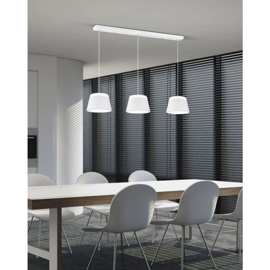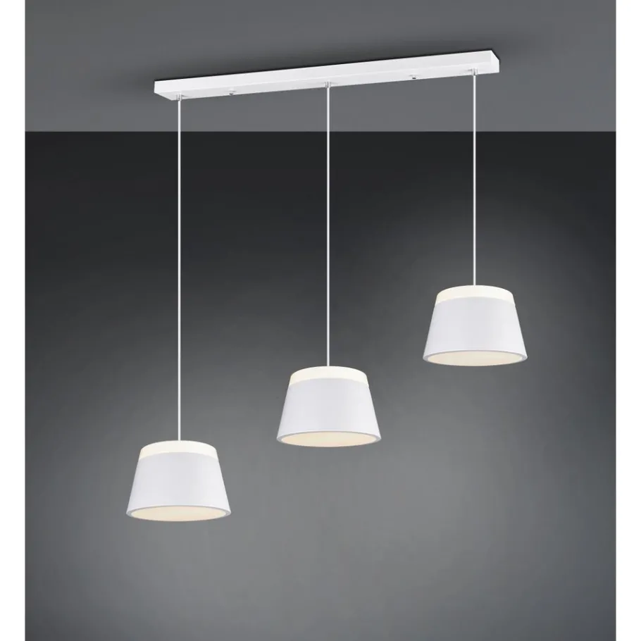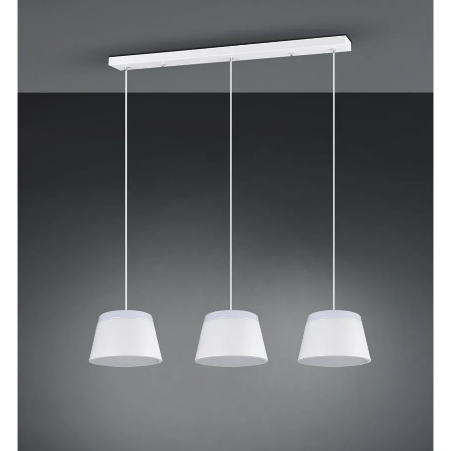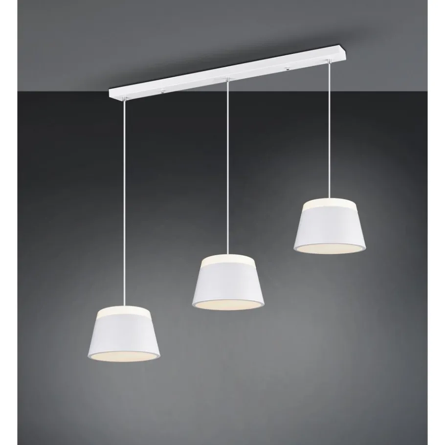 De BARONESS hanglamp maakt indruk met haar moderne en minimalistische ontwerp. De kappen zijn gemaakt van metaal, met een witte acryl schijf aan de boven- en onderkant, zodat het licht zowel naar boven als naar beneden wordt uitgestraald. De armatuur in mat wit kan worden gecombineerd met vele woonstijlen en sferen Het gebruik van LED lichtbronnen wordt aanbevolen voor energiebesparende verlichting. Deze vormen een ideaal alternatief voor conventionele halogeenlichtbronnen en bieden een hoge lichtkwaliteit en energiebesparingen tot 80%. Met LED lichtbronnen profiteert u ook van een lange levensduur en een lage warmteontwikkeling, terwijl het milieu wordt beschermd.