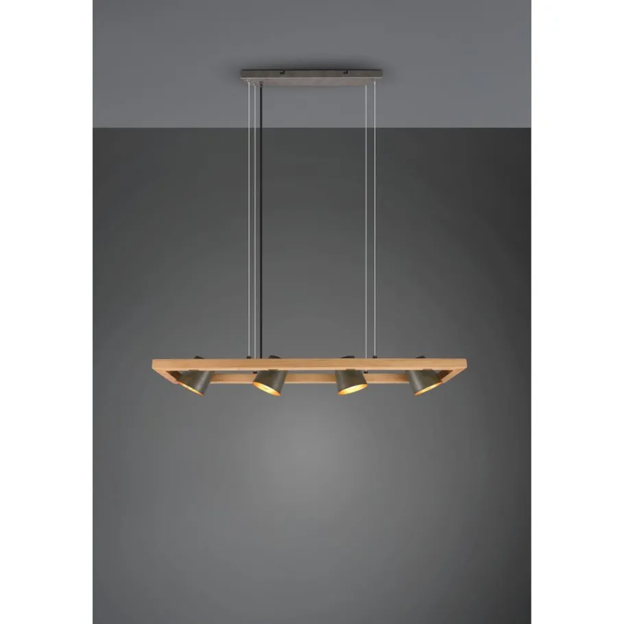 Een harmonisch totaalbeeld! De moderne vintagestijl uit hout en metaal maakt van de pendellamp BELL een decoratieve blikvanger. Boven de eettafel zorgt de lamp voor een aangename verlichting en wordt een echte blikvanger. Haar opvallende spots kunnen bovendien flexibel gericht worden. De kappen in antiek nikkel en goud ronden de moderne woonstijl vakkundig af. Voor een energiebesparende verlichting is het gebruik van een ledlichtbron aanbevolen. Deze zijn een optimaal alternatief voor gewone halogeenlampen en staan voor een hoge lichtkwaliteit en een energiebesparing van tot 80%. Bovendien profiteert u bij ledlichtbronnen van een lange levensduur, een geringe warmteontwikkeling en spaart tegelijkertijd het milieu.